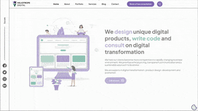 Heliotrope Digital, an innovative agency specializing in UX/UI design, mobile, and software development, initiated an elegant endeavor to reinvigorate their website. The aim was to achieve seamless adaptability across various devices, while also imparting a contemporary, minimalist, and engaging visual appeal. The redesign process commenced with the initial design in Figma, followed by development in Webflow.