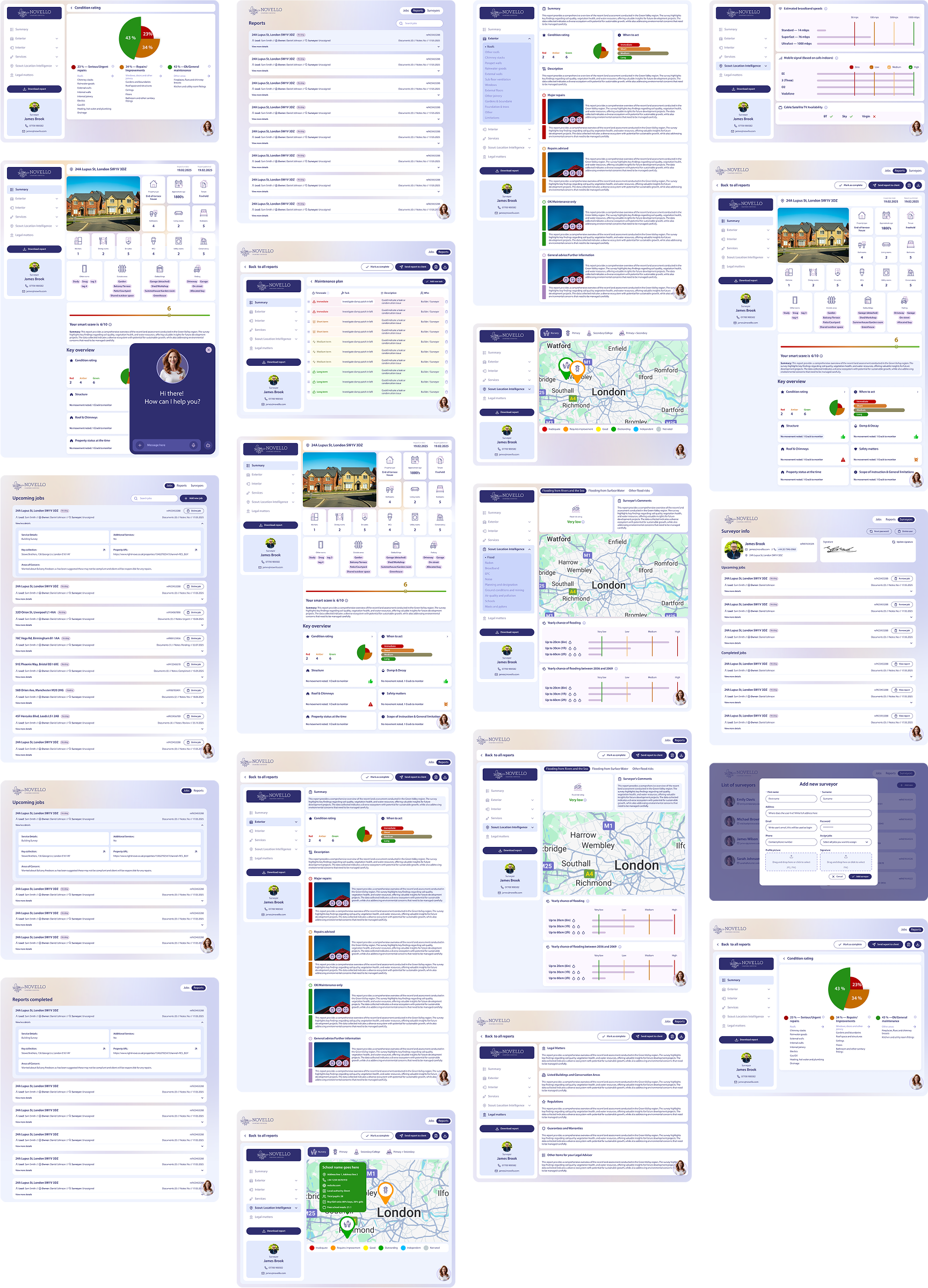 I also designed a desktop admin portal where Novello admins can create jobs, upload documents, create surveyors and assign these jobs to their surveyors which will then show on their iPad apps and in-built calendars. Surveyors also have a web portal where they can view and edit their submitted jobs.