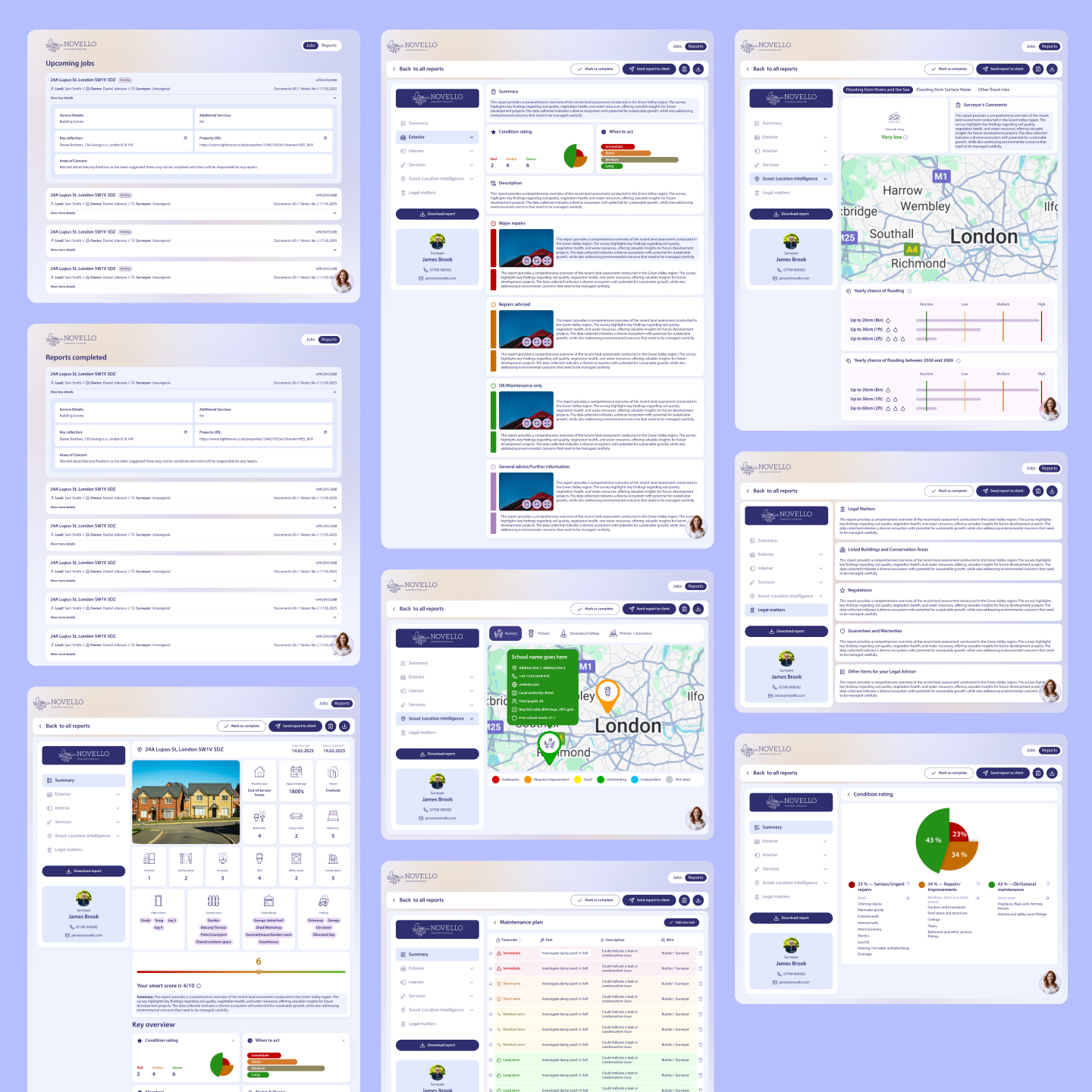 Novello had a system in mind for their surveyors. They wanted to build an iPad app for their surveyors to use and integrate it with AI. Later I designed a desktop portal for the admins, a portal for surveyors and a smart portal for the clients to view the results of reports.